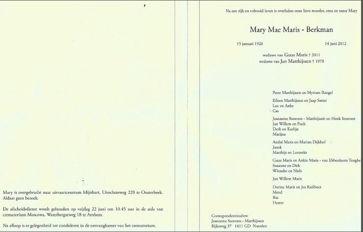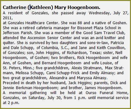 3. Catherine (Kathleen) Mary Hoogenboom * Goshen IN 02-08-1923 † Gonzales