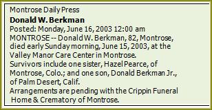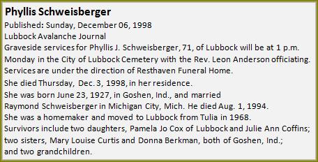 Pierceton IN 06-4-1916 † Goshen IN 09-01-1992 (76 year).