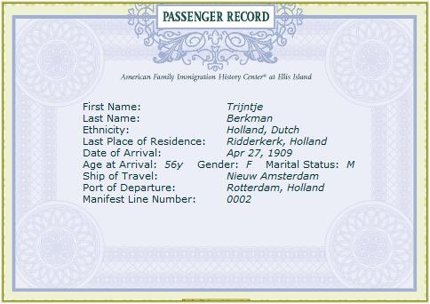 Leendert emigrated to Goshen IN USA 02-28-1923.