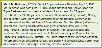 1. Trina Berkman * Goshen IN 01-01-1918 † 01-5-1918.